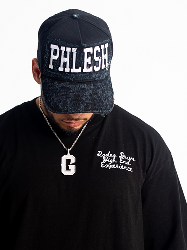 Phlesh Fashion House "Dark Matter" black distressed hat