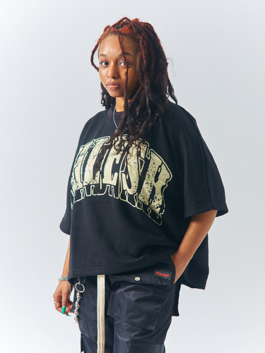 Black Drop Shoulder Cropped Tee